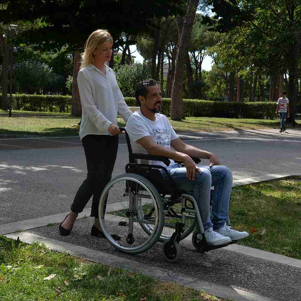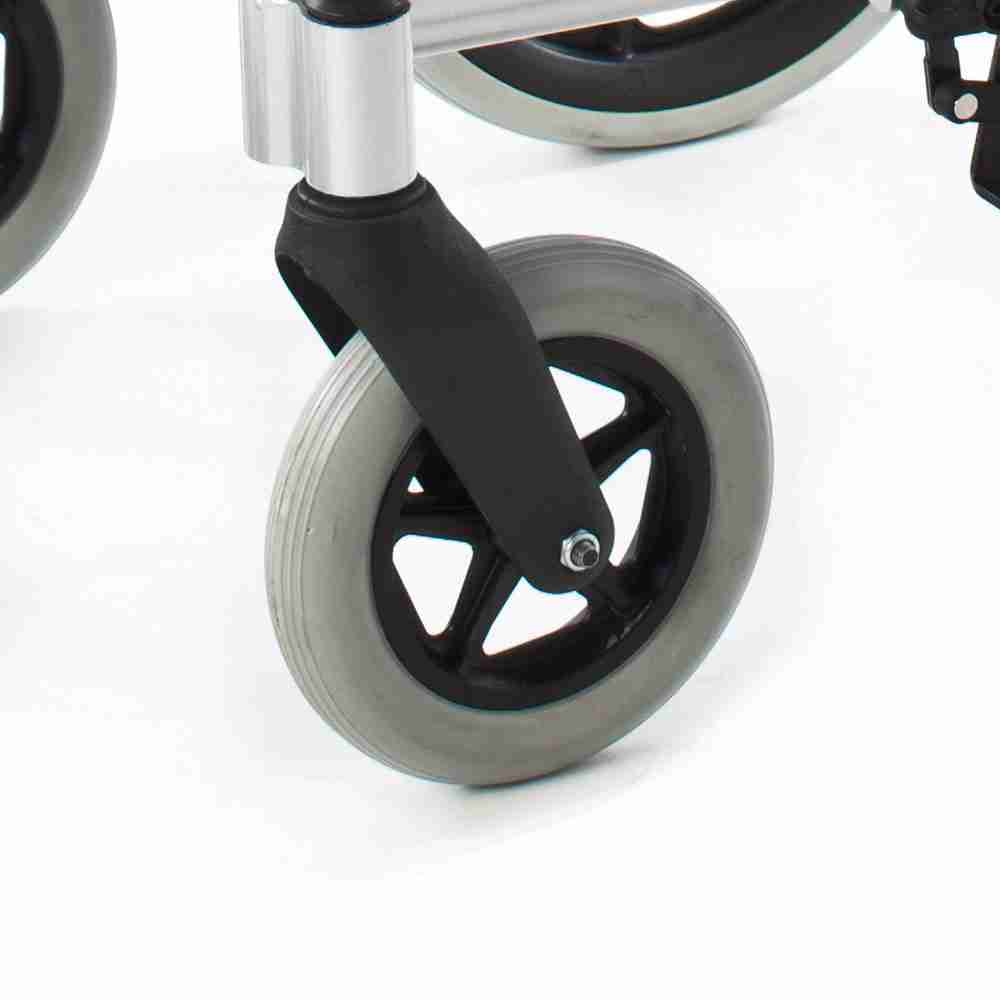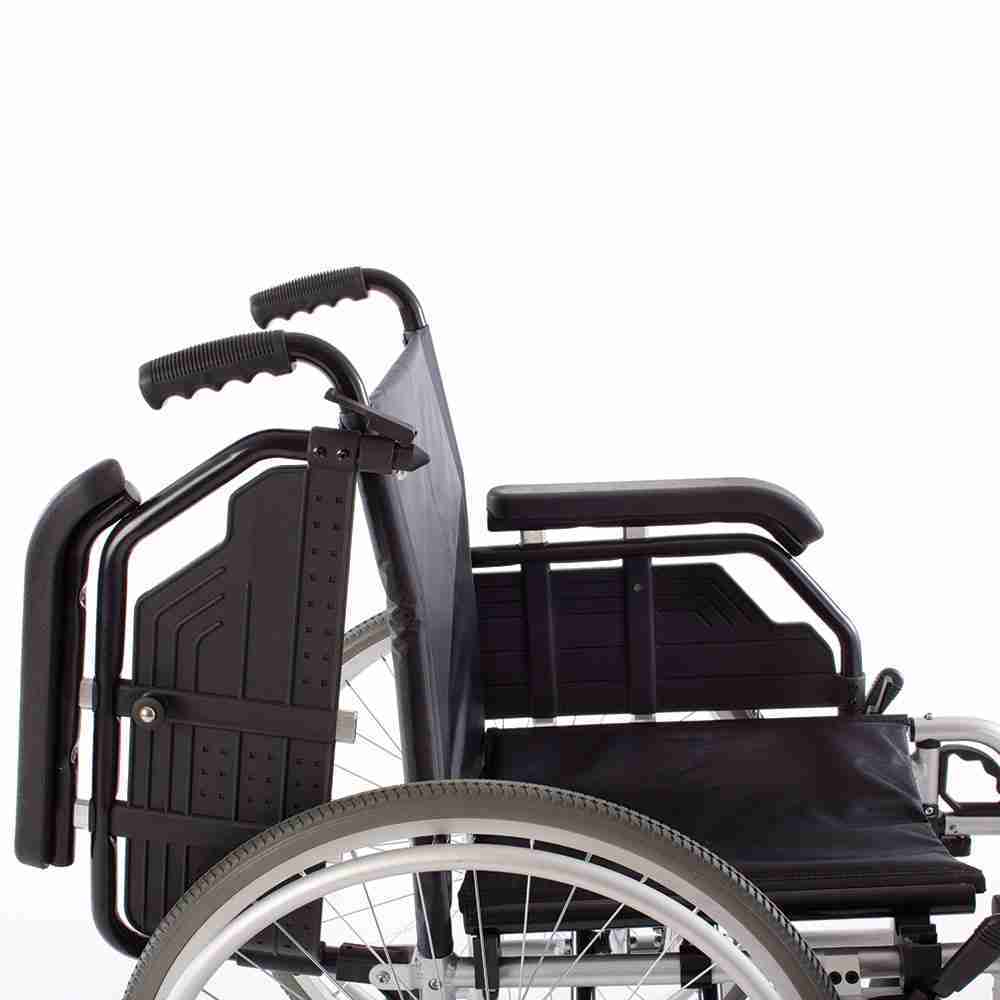 Oslonci za noge izrađeni su od plastike i imaju tibiotarzalno podešavanje i remene za petu. Invalidska kolica opremljena su stražnjim kotačima s brzim otpuštanjem.